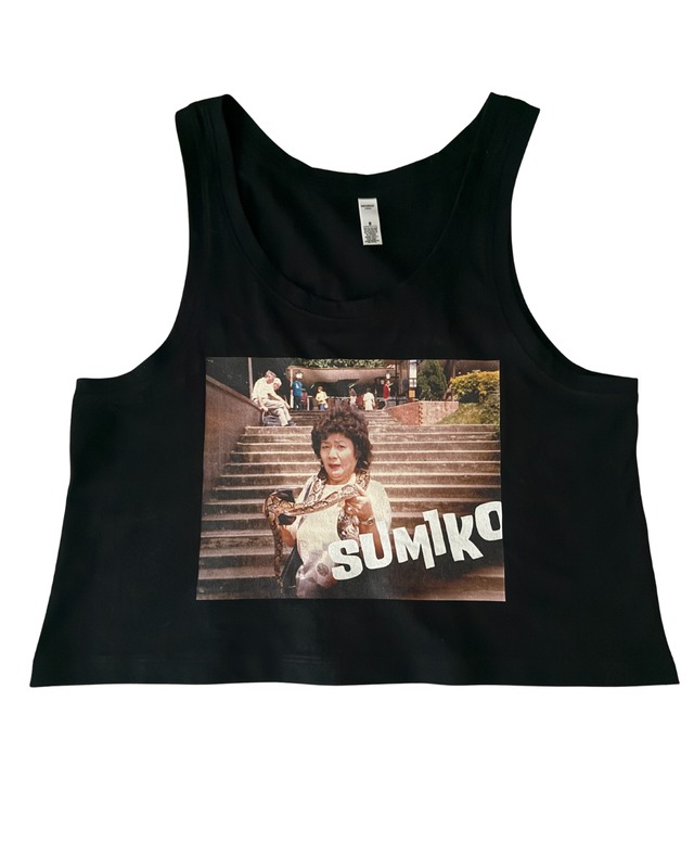Sumikoのノースリーブシャツです。 コットン100% 夏にぴったりの着丈短めのデザインです。 ホワイトもあります。 大蛇Sumikoがコーディネートのアクセントにも魔除けにもなります。 Cityも山も海も、どこにでもSumikoはフィットします。 そして、もう一つ。 どこに行ってもすれ違う人からいつもと違う視線をもらうことができるはず。 きっと彼らは思っています。 「それ、だれ?」と。 ぜひ、Sumikoをお楽しみください。